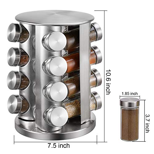 16-VASI: Il nostro portaspezie contiene 16 vaschette da 160 ml per l’uso quotidiano di sale, pepe, paprika, cumino, curry e altre spezie. E si può anche chiaramente etichettato per una identificazione rapida e facile. (Nota: le spezie non sono incluse).