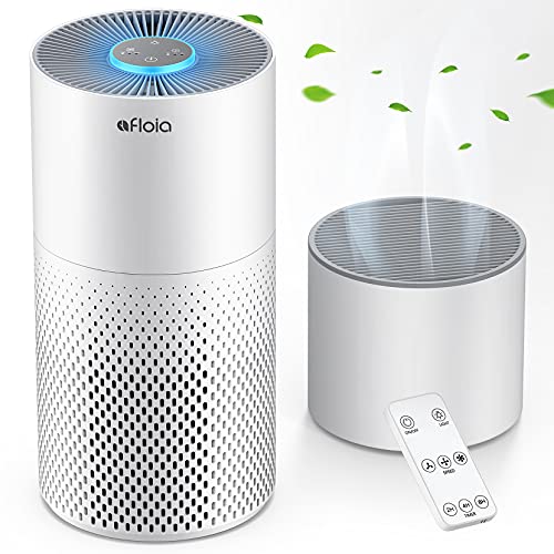 Afloia 2 in 1 Purificatore d’aria e umidificatore, Telecomando, Tre Modalità, 2/4/8 Timer, Luce 7 Colori, 22dB Modalità di Sonno, CADR 130m²/h, Perfetta per Pazienti Allergici, Fumatori