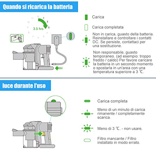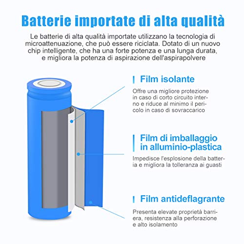➤【PIÙ TEMPO DI ESECUZIONE】Adotta celle importate, prestazioni migliori rispetto al tipo comune. 3000mAh di capacità per pulizia profonda in tutta la casa. ▶ Nota: una nuova batteria deve essere completamente carica prima dell’uso (almeno 3,5 ore). E può essere completamente attivato e raggiungere le massime prestazioni dopo 2-3 volte di utilizzo regolare (carica / scarica completa)