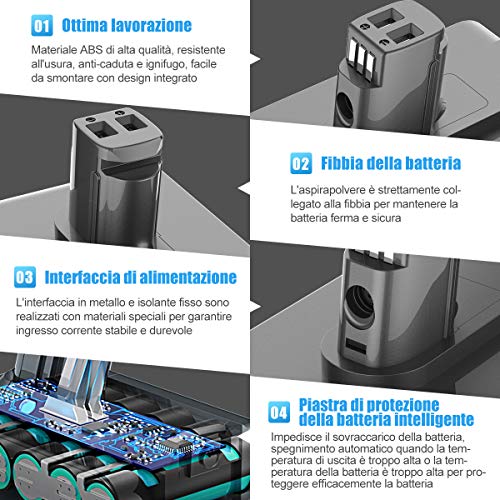 ➤【COMPATIBILITÀ PERFETTA】Compatibile con 22.2V batteria Dyson tipo A: DC35, DC31, DC31 Animal, DC31 Animal Exclusive, DC34, DC45, DC44 (Non adatto per DC44 MK2). 🚩 Batteria DC31 è adatta SOLO per TIPO A, “TIPO A” ha un pulsante per rimuovere la batteria. “Tipo B” è fissato nell’impugnatura con una vite