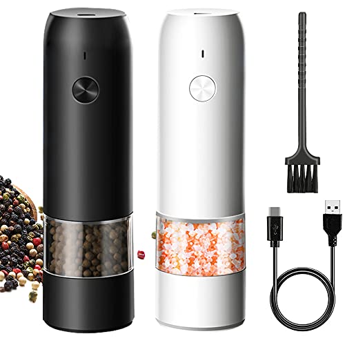 Braoses Macinapepe elettrico e macinapepe USB, ricaricabile, funzionamento automatico con luce LED, funzionamento con una sola mano, meccanismo in ceramica (Bianco)