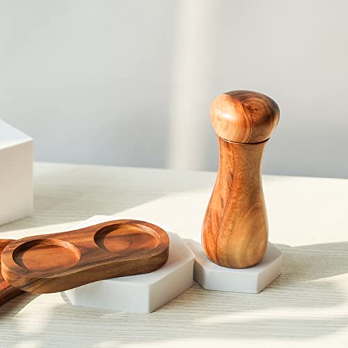 Macinapepe: può essere utilizzato anche come macina sale come macinino in ceramica non soggetto a corrosione, legno di acacia, il vassoio NON è incluso. Altezza: 15.5 cm, Diametro: 6 cm