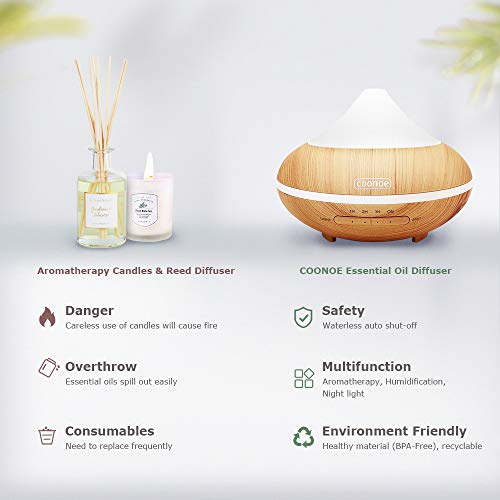 Regalo Perfetto – 5 funzioni a 1, aromaterapia, umidificazione dell’aria, purificazione dell’aria, una romantica luce notturna a 7 colori, opere d’arte decorative, se vuoi regalare regali a parenti e amici, il diffusore di oli essenziali COONOE è la scelta migliore.
