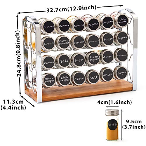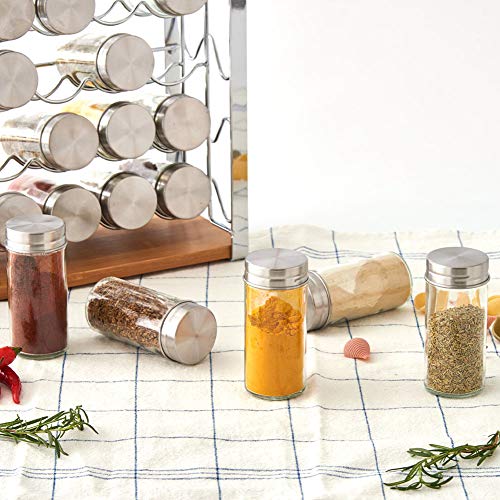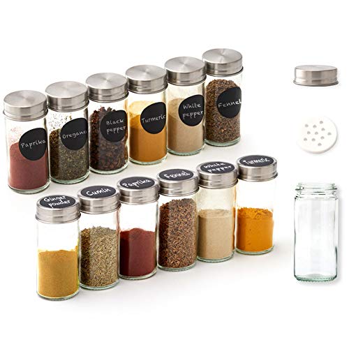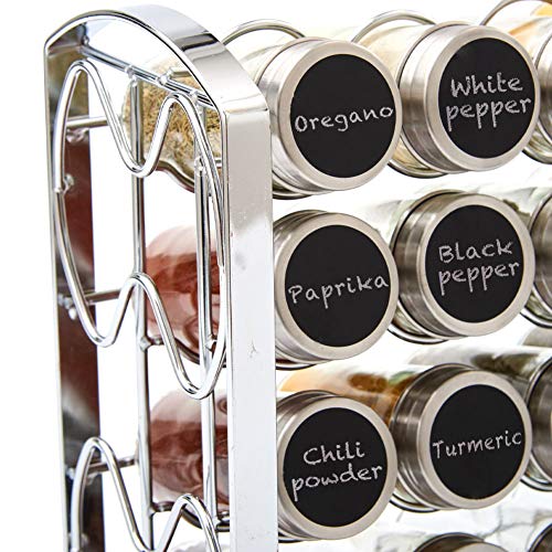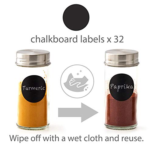 PERSONALIZZA LA TUA SPEZIE – Viene fornito con 24 bottiglie di vetro vuote con coperchi shaker per ordinare e conservare le tue spezie, condimenti, polveri, miscele, o sfregamenti personalizzati. Include 32 etichette vuote per lavagna per personalizzare e identificare facilmente le tue spezie.