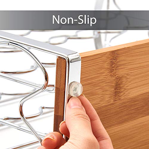 ROBUSTO E STABILE – Scaffali di stoccaggio del barattolo leggermente inclinati e una barra di arresto posteriore per garantire che non scivolino facilmente o cadano con movimento moderato. Piedini in gomma inferiori per una migliore presa e stabilità che non graffieranno o danneggeranno il piano di lavoro e le superfici del mobile.