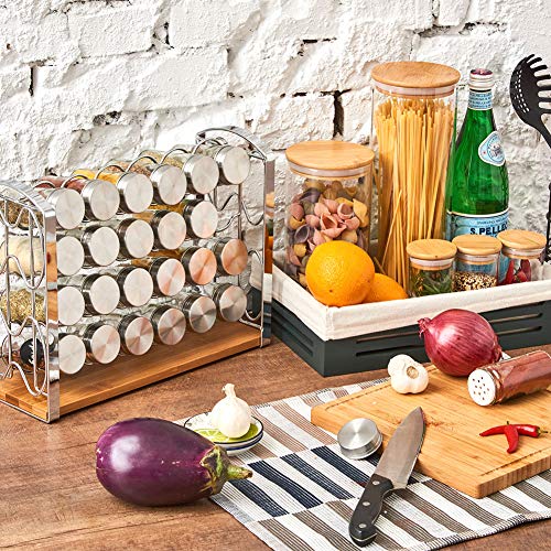 Il EZOWare Portaspezie Autoportante con 24 bottiglie offre un modo salvaspazio e decorativo per organizzare spezie, erbe o condimenti. Il design a basso profilo a 4 livelli occupa uno spazio minimo sul bancone e utilizza spazio verticale inutilizzato. Migliore visibilità e facile accesso alle spezie mentre si cucina.