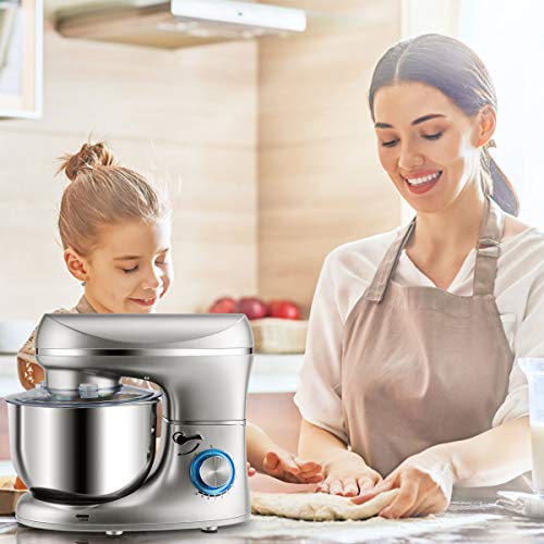 3 ganci in metallo: Questa impastatrice planetaria multifunzionale è dotata di uno sbattitore, un gancio impastatore e una frusta che servono per impastare, preparare torte, ecc. in grado di soddisfare le esigenze quotidiane di cottura.