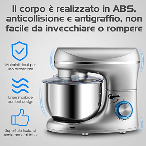 Corpo in ABS : Questa impastatrice è realizzata in acciaio inossidabile e ABS. L’acciaio inossidabile è resistente alle alte temperature e alla corrosione mentre l’ABS è un materiale plastico di alta qualità, adatto a un uso a lungo termine.