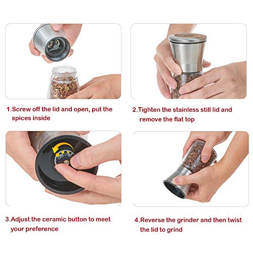 gotyou 2 Pezzi Macinapepe in Acciaio Inossidabile,Macina Sale e Pepe Macinapepe Manuale,Smerigliatrice di Rugosità Regolabile,Bottiglia per Condimento,Bottiglia di Spezie Forniture da Cucina