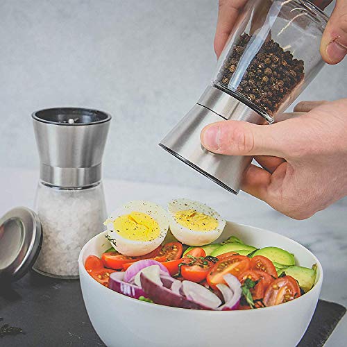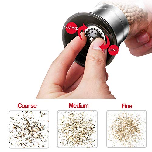 [Ampiamente usato] Questo set per macinare sale e pepe non è progettato solo per sale e pepe, ma hai anche la possibilità di usare pepe in grani, sale marino, sale dell’Himalaya, chiodi di garofano e altro,Ideale per cucinare e cuocere in cucina.