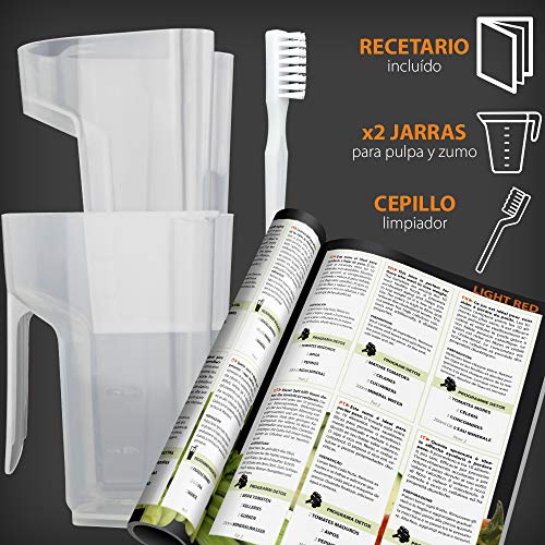 La più recente tecnologia di pressatura a freddo. Motore da 200W. Doppia uscita indipendente: per il succo e per la polpa. 8 programmi e programma di pulizia. Bocca di alimentazione per pezzi di grandi dimensioni. Eco Friendly e risparmio sui consumi: BPA Free e sistema di spegnimento automatico dopo 20 minuti di inattività.