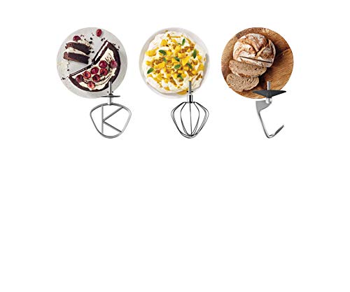 3 GANCI DI MISCELAZIONE : Frusta K per ingredienti secchi, Gancio Impastatore per facilitare la lavorazione di pane, pizza e focacce, Frusta a Filo per preparare soffici composti spugnosi