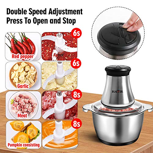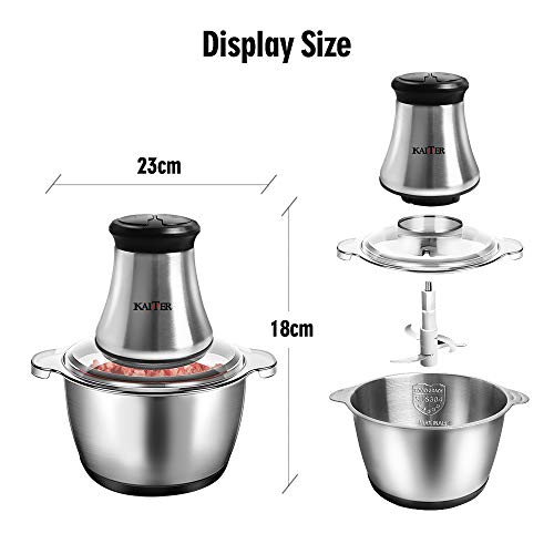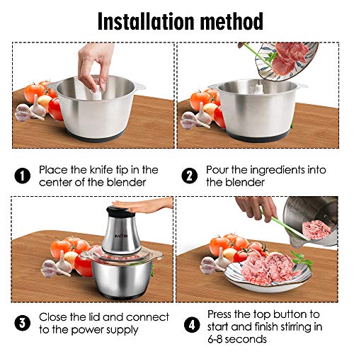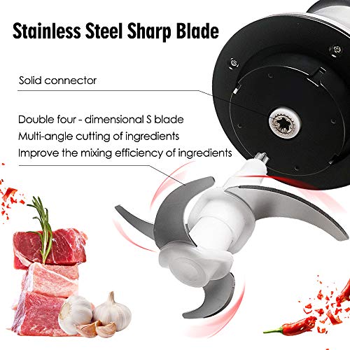 MAGGIORE CAPACITÀ ED EFFICIENZA: Il tritatutto da 2 litri ha una potenza di 350 W, che è più efficiente e più veloce. Le 4 lame tridimensionali in acciaio inossidabile possono tagliare più velocemente e in modo più uniforme da 360 ° per ottenere la consistenza perfetta. Un coperchio trasparente permette di osservare il grado di tritare.