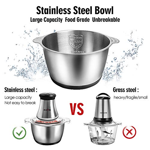 DUREVOLEZZA E DESIGN AMICHEVOLE: Questo tritatutto è realizzato in acciaio inossidabile 304 di alta qualità, dotato di una ciotola in acciaio inossidabile, che è più forte, più sana delle ciotole di vetro, antiurto, che garantisce durata. La giunzione tra la lama e il corpo principale è realizzata in acciaio inossidabile, che non è facile da rompere.